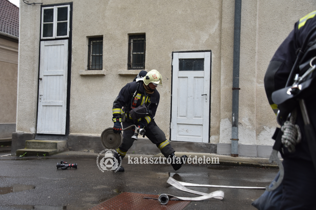 A gyakorlat helyszínére tizenkét tűzoltó vonult négy gépjárművel. Odabent a szervezők a tüzet villogó piros, a füstöt villogó kék fényekkel imitálták. A beavatkozó állomány bevetési védőruhában és a füsttel telített helyiségekben teljes légzésvédelem mellett kezdte meg a feltételezett káreset felszámolását. A lángokat több vízsugárral fékezték meg. Az oltási munkálatokkal párhuzamosan a mentési csoportot alkotó tűzoltók átvizsgálták az épületet, és magatehetetlen, sérült emberek után kutattak. A sérültet -akit a gyakorlat során egy bábu helyettesített- az egységek kivitték az épületből. A gyakorlat célja a beavatkozó állomány szerelési, helyismereti és szituációs begyakorló gyakorlatokon elsajátított ismereteinek felmérése, ellenőrzése volt.