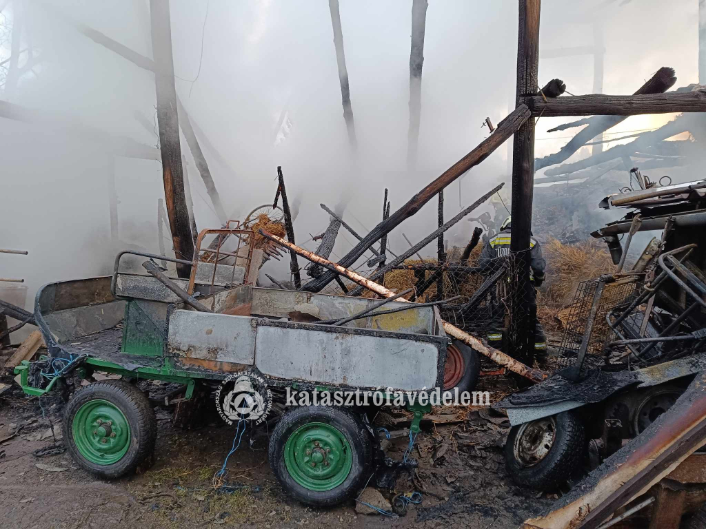 Kigyulladt és teljes terjedelmében égett egy családi ház udvarán álló, kilencvenhat négyzetméteres istálló.