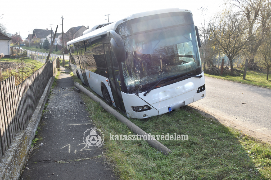 Letért az úttestről, az árokba hajtott és egy távközlési oszlopnak ütközött egy menetrend szerint közlekedő autóbusz csütörtök délelőtt Nógrádmarcalon, a Rákóczi úton. Az ütközés hatására az oszlop kidőlt. A balassagyarmati hivatásos tűzoltók és a Nógrádmarcali Önkéntes Tűzoltó és Polgárőr Egyesület önkéntesei áramtalanították a buszt. A járaton tíz ember utazott, mindannyian el tudták hagyni a járművet. A mentőszolgálat munkatársai három embert kórházba szállítottak.