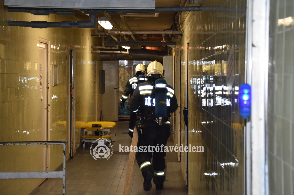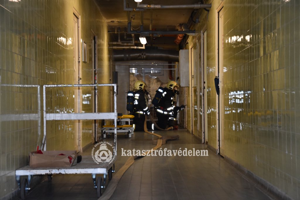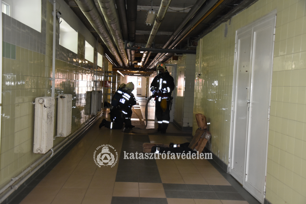 A gyakorlat helyszínére nyolc tűzoltó vonult két gépjárművel. Odabent a szervezők a tüzet villogó piros, a füstöt villogó kék fényekkel imitálták. A beavatkozó állomány bevetési védőruhában és a füsttel telített helyiségekben teljes légzésvédelem mellett kezdte meg a feltételezett káreset felszámolását. A lángokat két vízsugárral fékezték meg. A tűz oltásával párhuzamosan a kórház területén talált sérültet –akit egy fabábu alakított- a megfelelő légzésvédelem biztosítása után kivitték az épületből. A gyakorlat során a beavatkozók az egészségügyi és fekvőbeteg ellátására szolgáló intézményekben keletkezett tüzek oltására, valamint a sérült személyek mentésének gyakorlására fókuszáltak.