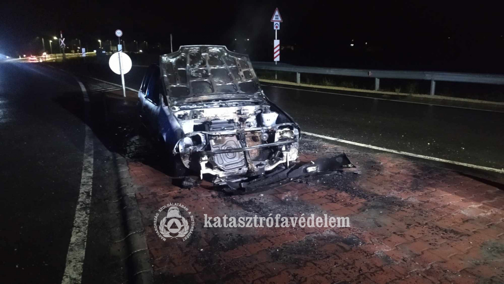 Letért az úttestről, az árokba hajtott és az oldalára borult egy személyautó,Az árokba hajtott és az oldalára borult egy személyautó,Kigyulladt és teljes terjedelmében égett egy parkoló gépjármű.....