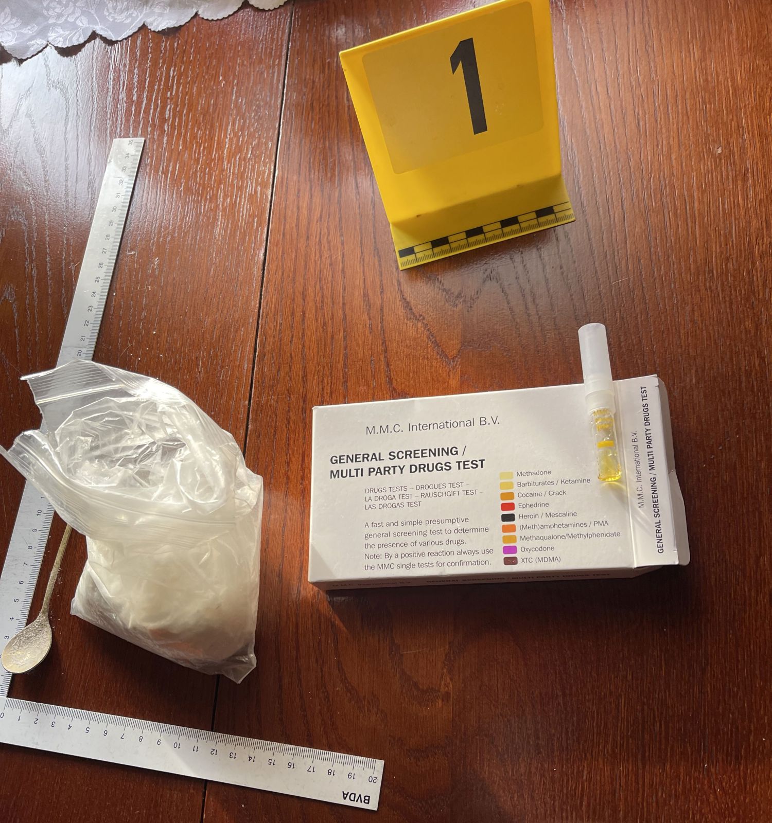 A rutinos nyomozók tudták, hogy hol, és mit keressenek. A 24 éves Karancskesziben élő nő tartózkodási helyén, az ágyon lévő párna alá rejtett táskából lefoglaltak egy önzáró nejlontasakot, benne nettó 122 gramm, fehér, rögös és por állagú anyaggal. A tasakban egy szennyezett, violinkulcs mintázatú kanál is volt, amelyet feltehetően porciózásra használtak. A táska rejtett még többek között mobiltelefont és mérleget, valamint – többségében kis címletekben – 99 ezer forintot. A párna alatt a nyomozók találtak még egy mobiltelefont, valamint egy kicsi fémdobozt, amely előre kiadagolt pakettet és kis méretre darabolt alufóliákat rejtett. A megtalált anyagok gyorstesztes vizsgálata ketamin jelenlétét valószínűsítette. A szakértői vélemények alapján a nő által árusított szerek N-etil-norpentedront tartalmaznak, amely új pszichoaktív anyagnak minősül.