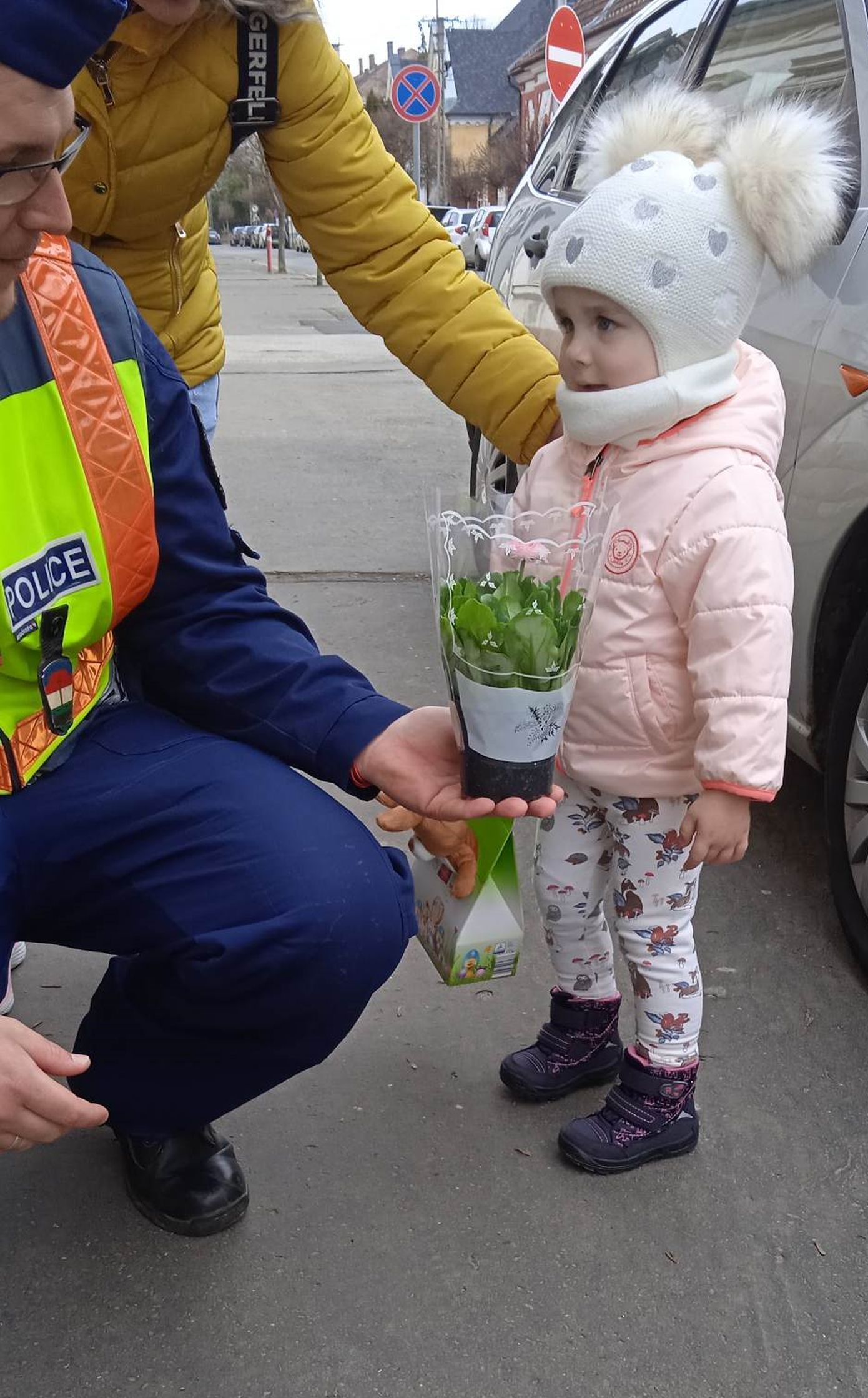 A Nógrád vármegyei rendőrök nőnap alkalmából ebben az évben is virággal köszöntötték a közúti forgalomban résztvevő női járművezetőket és gyalogosokat.