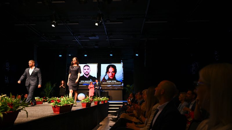 Tóth Krisztián cselgáncsozó és Gubik Petra színésznő a hivatalos ünnepi öltözetben