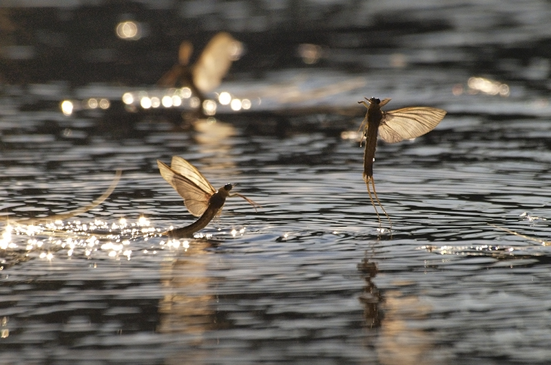A kikelő szárnyas egyedek a víz felszíne közelében megkezdik rajzásukat. Néhány méter magasságú kavargó tömegben a hímek megkeresik a párjukat, a levegőben párosodnak. A párzás után a hím rövidesen elpusztul, a nőstény a vízbe rakja a mintegy hétezer petéjét.