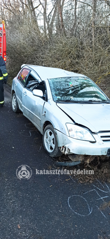 Letért az úttestről, az árokba sodródott és az oldalára borult egy személyautó hétfő délután a 2108-as úton, Magyarnándor közelében. Az autó a baleset során egy út menti távközlési oszlopot is kidöntött. A balassagyarmati hivatásos tűzoltók és a Nógrádmarcali Önkéntes Tűzoltó és Polgárőr Egyesület önkéntesei áramtalanították a járművet.