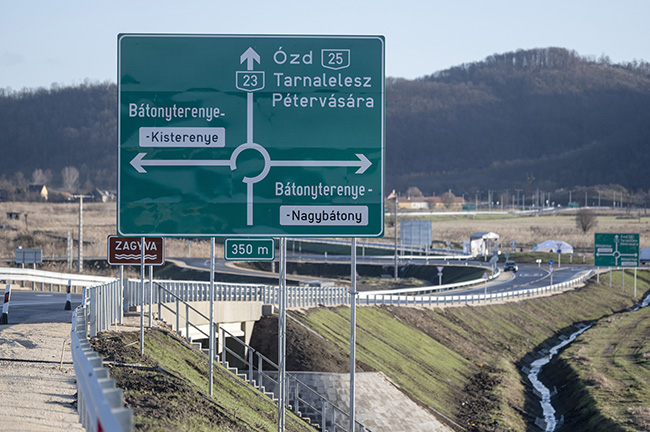 Készen van az észak-déli irányú összekötő út is, amely szintén kétszer egy sávon szolgálja a forgalmat. Ennek hossza 2,18 kilométer és egy körforgalmat is kialakítottak a szakasz végén; a megépítésének köszönhetően valósul meg Kisterenye és Nagybátony összeköttetése - tette hozzá.