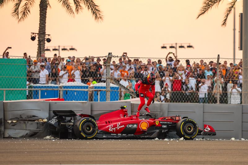 Carlos Sainz már a második szabadedzés elején összetörte az autóját Abu-Dzabiban, míg a másik Ferrarival Charles Leclerc az élen végzett Norris és Verstappen előtt.