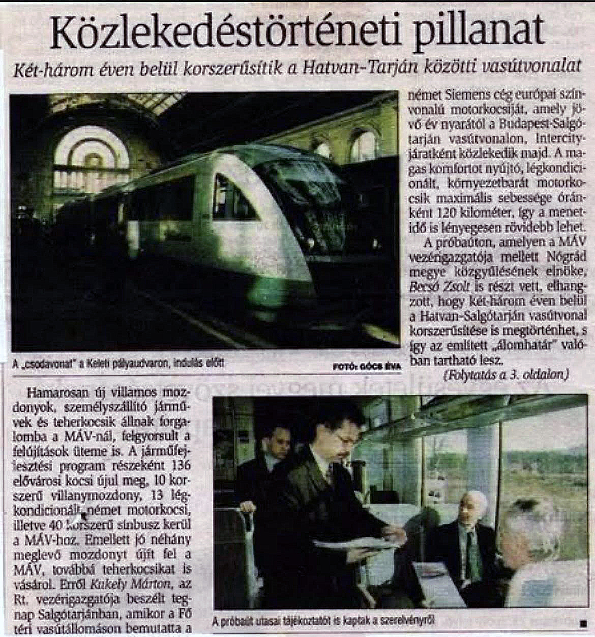 2., 2002 március 28-án több tucatnyi salgótarjáni polgár utazott velem együtt Budapestre a Keleti pályaudvarra, ahonnan reggel 8 órakor elindulhattunk azzal a motorkocsival Salgótarjànba, amely az akkori tervek szerint az InterCity összeköttetést teremtette volna meg a 2 város között.