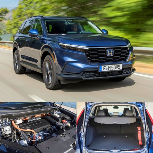 A vadonatúj CR-V nálunk kapható hibrid verziói a 2,0 literes, Atkinson ciklusú szívó benzinmotort használják. Nem csak a periféria újult meg (hatékonyabb befecskendezés), hanem a főtengelyt is lecserélték. Ebből a vezető aligha érez bármit is, de az már szembeötlő, hogy a zajszigetelés javult, a benzinmotor hangjából jóval kevesebb szűrődik be az utastérbe. Bár nagy gázadásra itt is felpörög a benzinmotor, a rendszer váltásokat szimulál, ami határozottan előny nagy emelkedőkön vagy autópálya-felhajtókon. A 184 lóerő rendszerteljesítményű e:HEV-ben, vagyis az öntöltő verzióban két villanymotor dolgozik, az egyik generátorként működik, a másik pedig a hajtásárt felel – elektromos üzemmódban pár kilométert képes megtenni. A PHEV verzió más tészta, az e:HEV 1,06 kWh-s akkumulátorával szemben itt 17,7 kWh-s kapacitású a telepcsomag, így villanyüzemben 82 kilométer is elérhető.