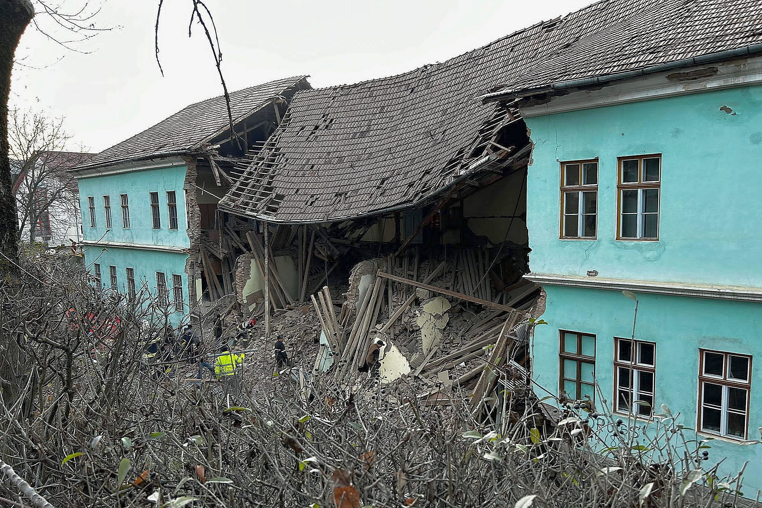 Alina Maria Ciobotariu, az ISU szóvivője a Digi24 hírtelevíziónak elmondta: a nagy erőkkel helyszínre érkező tűzoltók három 15-17 év közötti diáklányt mentettek ki a romok alól, ketten eszméletüknél voltak, a harmadik, szívleállással kihozott lányt sikerült újraéleszteni, de állapota továbbra is súlyos, lélegeztetőgépen van.