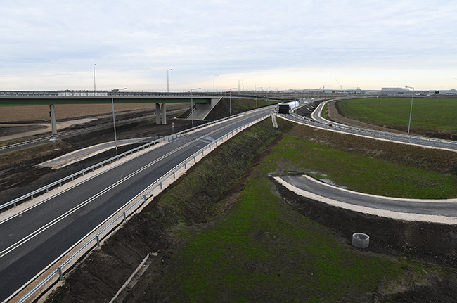 Bói Loránd szerint a most átadott beruházás országosan is példaértékű: olyan integrált megoldás született a gyártelep kiszolgálására és a térségben élők közlekedésének javítására, amire Magyarországon kevés példa van. A korábbi vasútfejlesztés után elkészült a 33-as számú főút meglévő kétsávos szakaszának négysávosra bővítése 2200 méter hosszan, ezen túlmenően csomóponti ágakat, új jelzőlámpás csomópontokat, párhuzamos gyalogos- és kerékpárutakat, valamint mezőgazdasági földutakat alakítottak ki - ismertette.