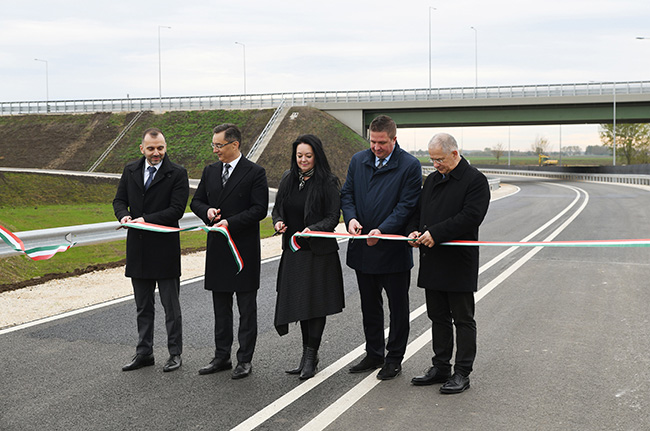 Hozzátette: a főút részeként elkészült továbbá egy négysávos közúti híd és egy egysávos útág átvezetése is a 108-as számú vasútvonal felett. Utóbbi hazánkban elsőként innovatív, újszerű technológiával épülhetett meg, ugyanis háttöltését mintegy 1260 köbméter üveghabból alakították ki.