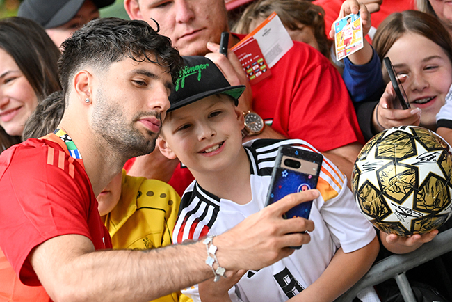 A valamivel több mint egyórás tréning végén jött az, amire a szurkolók leginkább vártak, ugyanis a pályáról kivezető utat kordonokkal lezárták, a magyar válogatott tagjai pedig ott vonultak ki a helyiek, a szurkolók és a gyerekek rajongása közepette. A futballisták aláírásokat osztogattak, fényképeket készítettek a mintegy 100 méter hosszú szakaszon. A legnagyobb érdeklődés Szoboszlait övezte, aki türelemmel fogadta a lelkes rajongókat, és a kordon mindkét oldalán végigsétált, nehogy kimaradjon valaki.