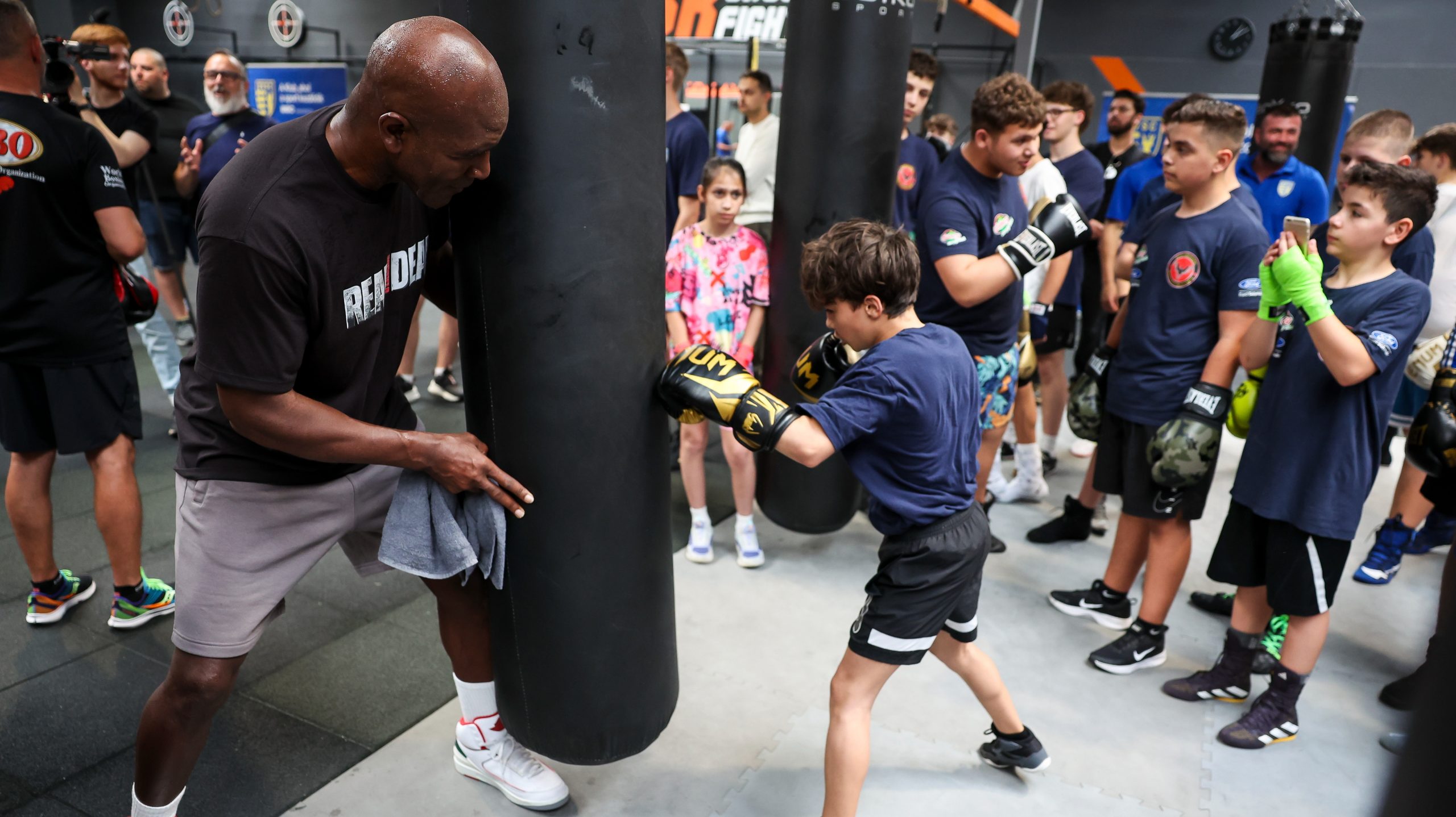 A legendás Evander Holyfield tartotta a keddi edzést a BVSC-Zugló ökölvívó-szakosztály fiatal sportolóinak az óbudai BSK Crossfight edzőteremben.