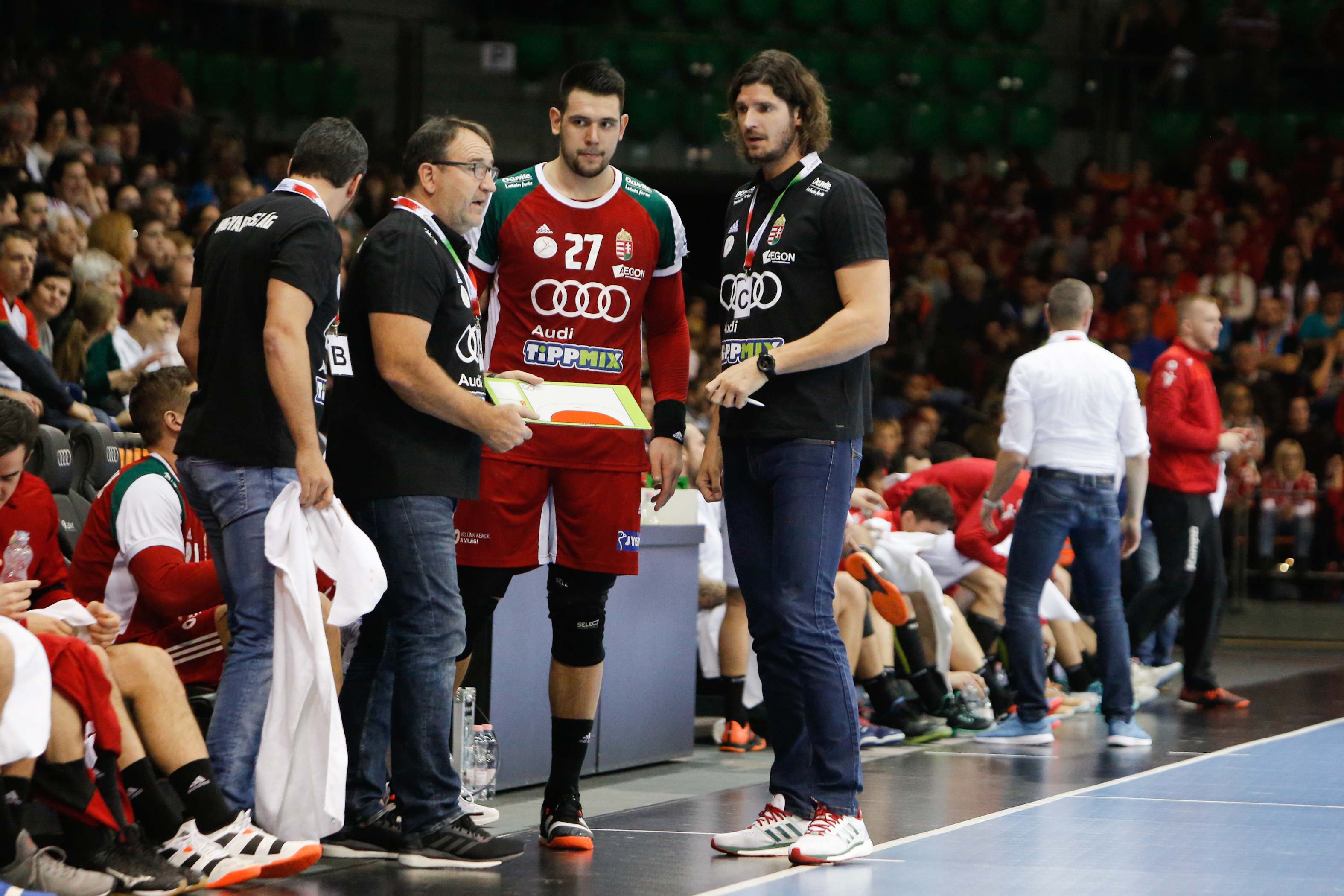 A magyarok az olimpiai kvalifikációs kontinenstorna csoportkörében Montenegrót, Szerbiát és Izlandot is legyőzték Münchenben, így a maximális két ponttal jutottak a kölni középdöntőbe, amelynek első fordulójában, csütörtökön 30-29-re kikaptak Ausztriától.