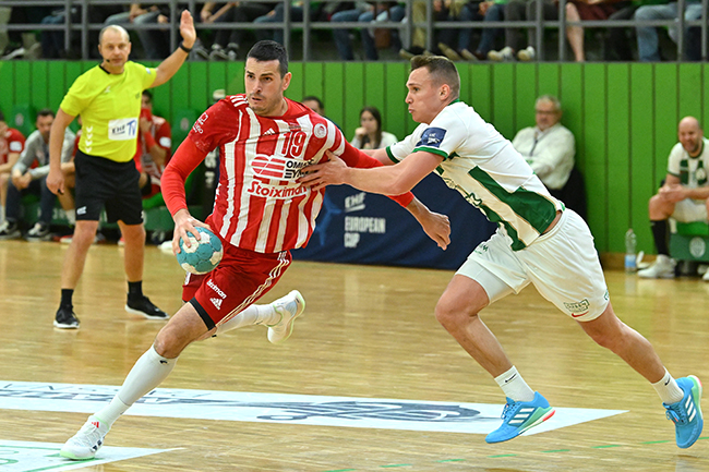 A Ferencváros házigazdaként 28-28-as döntetlent játszott a görög Olimpiakosz csapatával a férfi kézilabda Európa-kupa elődöntőjének első mérkőzésén, szombaton.
