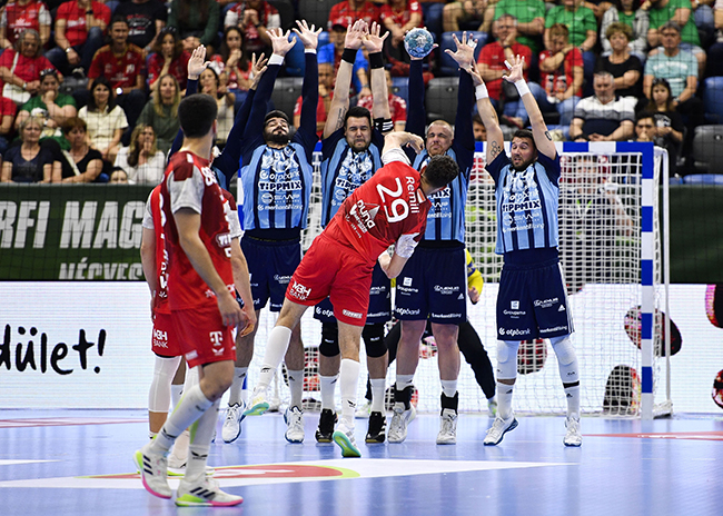Ezúttal hatékony védekezéssel kezdtek Bánhidi Bencéék, eleinte nem engedtek lerohanásokat ellenfelüknek, akik ezt látva a kapott gólok után a gyors középkezdéseket erőltették, és Nedim Remili vezérletével 7-4-re elléptek. Többet hibáztak a szegediek, ráadásul romlott a védekezésük hatékonysága, és a 21. percben először voltak négygólos hátrányban. Miguel Martins becserélése jót tett a csongrádiaknak, akik a portugál irányító akciógóljaival, valamint Mario Sostaric büntetőivel felzárkóztak 15-14-re, és a szünetben is csak egy találat volt a hátrányuk.