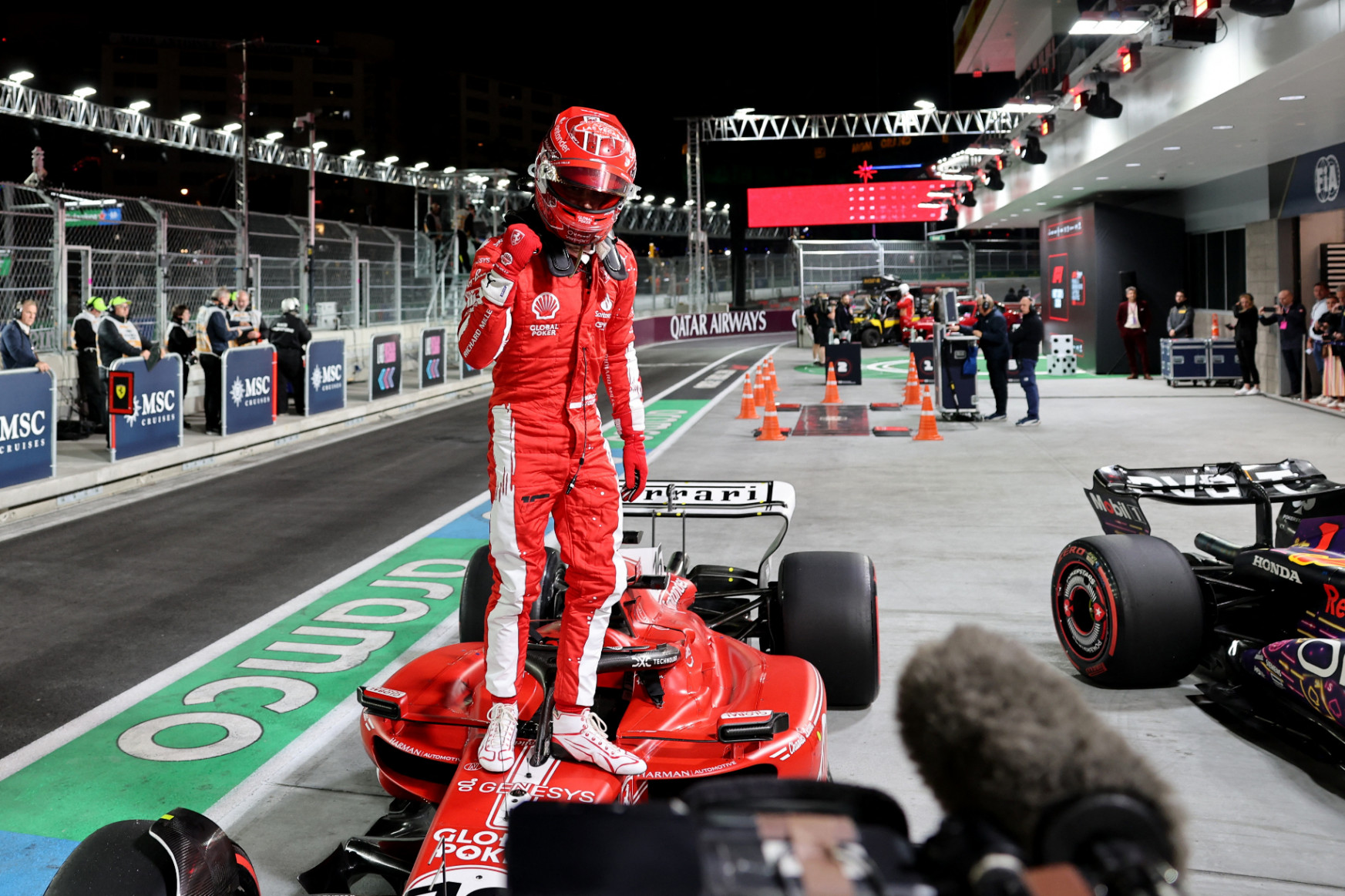A Las Vegas-i Nagydíjon Leclerc indulhatott az élről Verstappen, Russell, Gasly és a két Williams előtt, Alonso a kilencedik, Hamilton a tizedik, Perez a tizenegyedik, Sainz a tizenkettedik helyről rajtolt, a két McLaren pedig csak a rajtrács végén várta a lámpák kialvását.