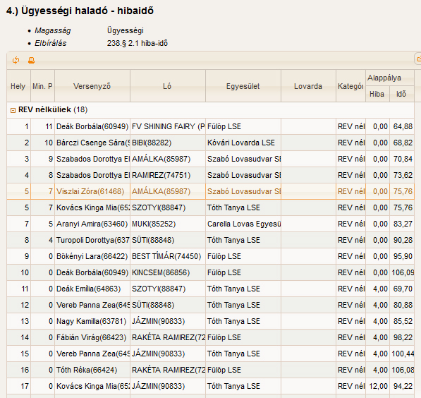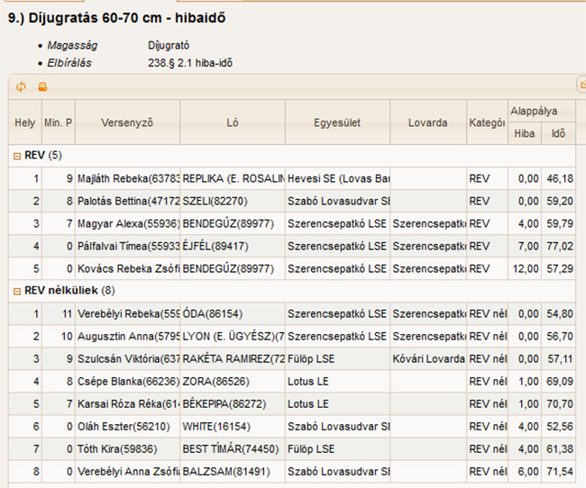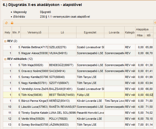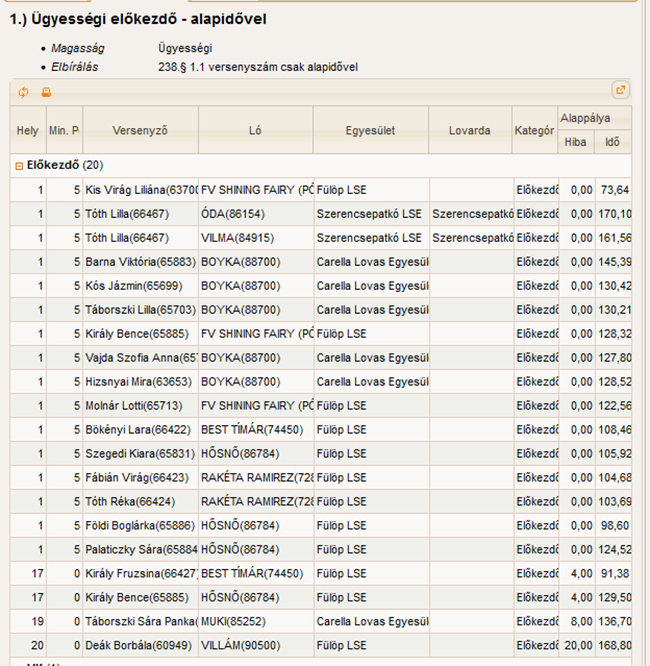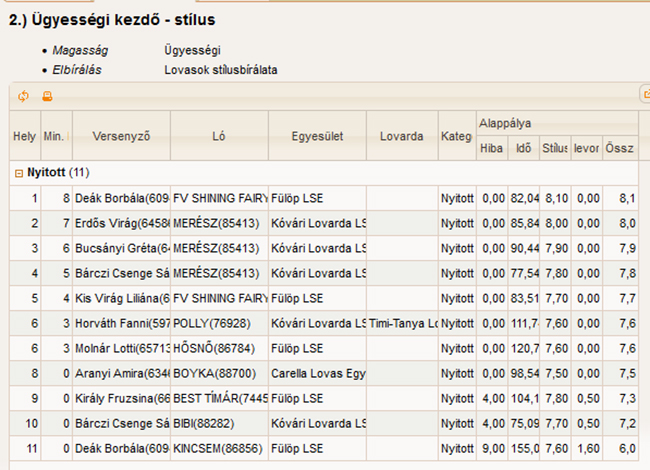 1. Kis Virág Liliána (FV SHINING FAIRY PÓNI lovával) Fülöp LSE; 1. Molnár Lotti (FV SHINING FAIRY PÓNI lovával) Fülöp LSE; 1. Bökényi Lara (BEST TÍMÁR lovával) Fülöp LSE; 1. Szegedi Kiara ( ( HŐSNŐ lovával ) Fülöp LSE ; 1. Fábián Virág (RAKÉTA RAMINEZ lovával) Fülöp LSE; 1. Tóth Réka ( ( HŐSNŐ lovával ) Fülöp LSE ; 1. Földi Boglárka ( ( HŐSNŐ lovával ) Fülöp LSE ; 1. Palaticzky Sára ( ( HŐSNŐ lovával ) Fülöp LSE ; 17. Király Fruzsina (BEST TÍMÁR lovával) Fülöp LSE ; 17. Király Bence ( HŐSNŐ lovával ) Fülöp LSE ; 20. Deák Borbála (VILLÁM lovával ) Fülöp LSE.