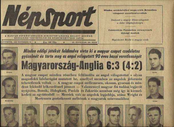 "Az angol játékosokban csalódott közönség bámulattal adózott a magyarok lenyűgöző labdaművészetének. Húsz éve nem láttak olyan labdarúgást Angliában, mint amilyent a magyarok bemutattak, akik klasszisokkal múlták felül az angolokat."