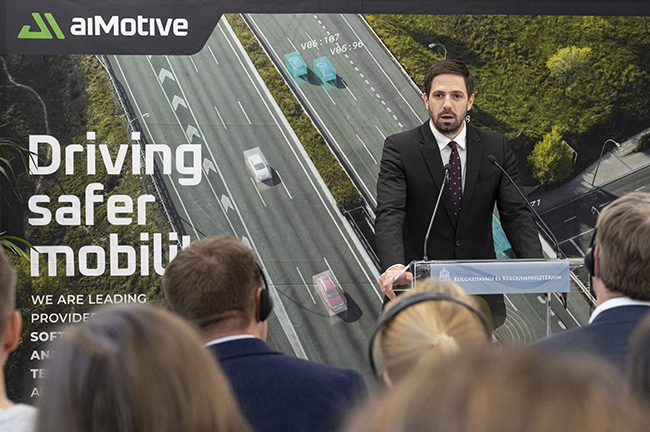 A Stellantis mintegy 20 milliárd forintos magyarországi beruházása bejelentésén Budapesten, a SmartSpace rendezvénytermében 2023. október 30-án. A Stellantis az általa tavaly megvásárolt magyar start-upba, az önvezető technológiával foglalkozó aiMotive Informatikai Kft.-be fektet be mintegy 20 milliárd forintot; a beruházást a magyar kormány 5 milliárd forinttal támogatja.