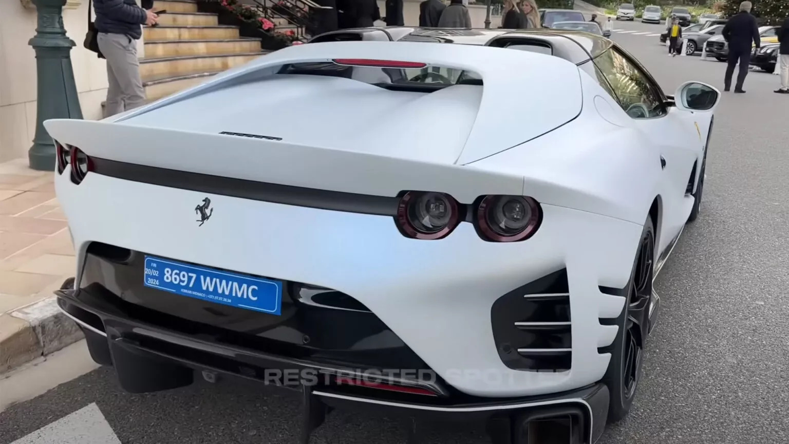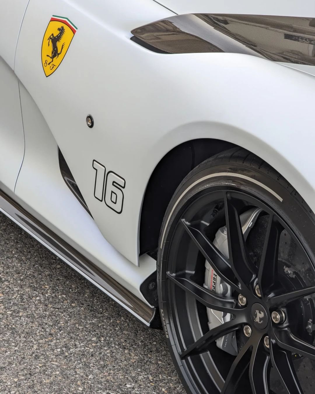 Az autón rögtön szembetűnik Leclerc rajtszáma, a 16-os is, amely mellett ott díszeleg a sárga Ágaskodó Paripa logója. Azonban nemcsak az autó külseje, hanem a specifikációja is meglehetősen erős. A kocsiban egy 6,5 literes, V12-es motor dübörög, amely 819 lóerős teljesítményre képes, és a Competizione A-ból csak 599 darab készült. A színvilág pedig még ennél is egyedibb: a Bianco Ondo Marino Opaco Leclerc kocsiján kívül csak egy Monza SP-n látható.