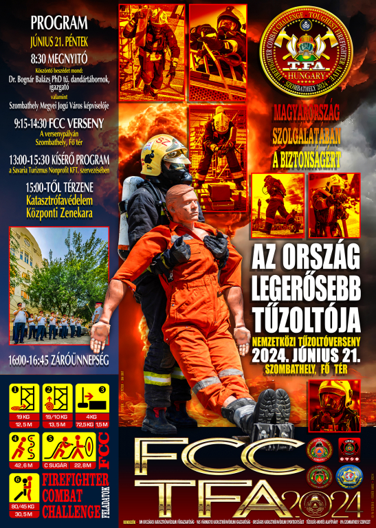 A „TFA-FCC HUNGARY-Szombathely”, az ország legerősebb tűzoltója nemzetközi tűzoltóverseny nemcsak magyar, hanem nemzetközi viszonylatban is igazi megméretés a tűzoltók körében. Állóképesség, kitartás és koncentráció is kell ahhoz, hogy a sportolók teljes védőfelszerelésben, időkeretek között teljesítsék a speciális versenypályát. A tavalyi évhez hasonlóan a nemzetközi viadal helyszíne ismét a szombathelyi Fő tér lesz, ahol valóságos akadálypályán mutathatják be az indulók, hogy mire is képesek. A versenyre nők és férfiak egyaránt jelentkezhetnek, legyen szó hivatásos, önkormányzati, létesítményi és önkéntes tűzoltókról.