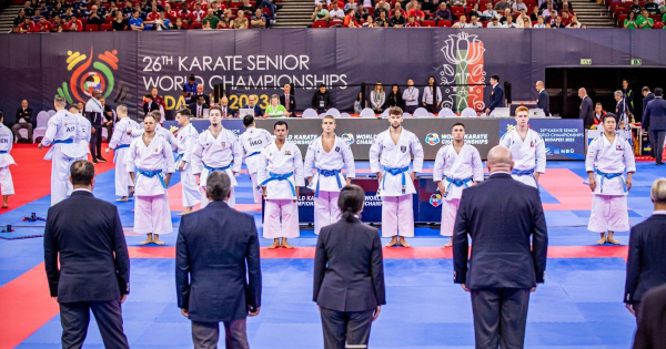 Az olimpiai bronzérmes Hárspataki Gábor bejutott küzdelemben (kumite) a férfi 75 kilogrammosok döntőjébe a Budapest Papp László Sportarénában zajló 26. karate világbajnokság második napján.
