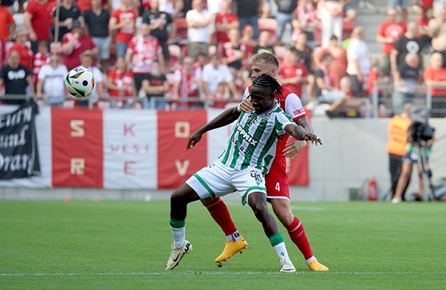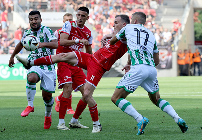 A fővárosiak továbbra is százszázalékosak az élvonalban, igaz, ez csupán a második találkozójuk volt, mert a nyitókörben a debreceni fellépésük elmaradt. A zöld-fehérek kedden kétgólos hátrányban fogadják a dán Midtjyllandot a Bajnokok Ligája-selejtező harmadik fordulójának hazai visszavágóján.