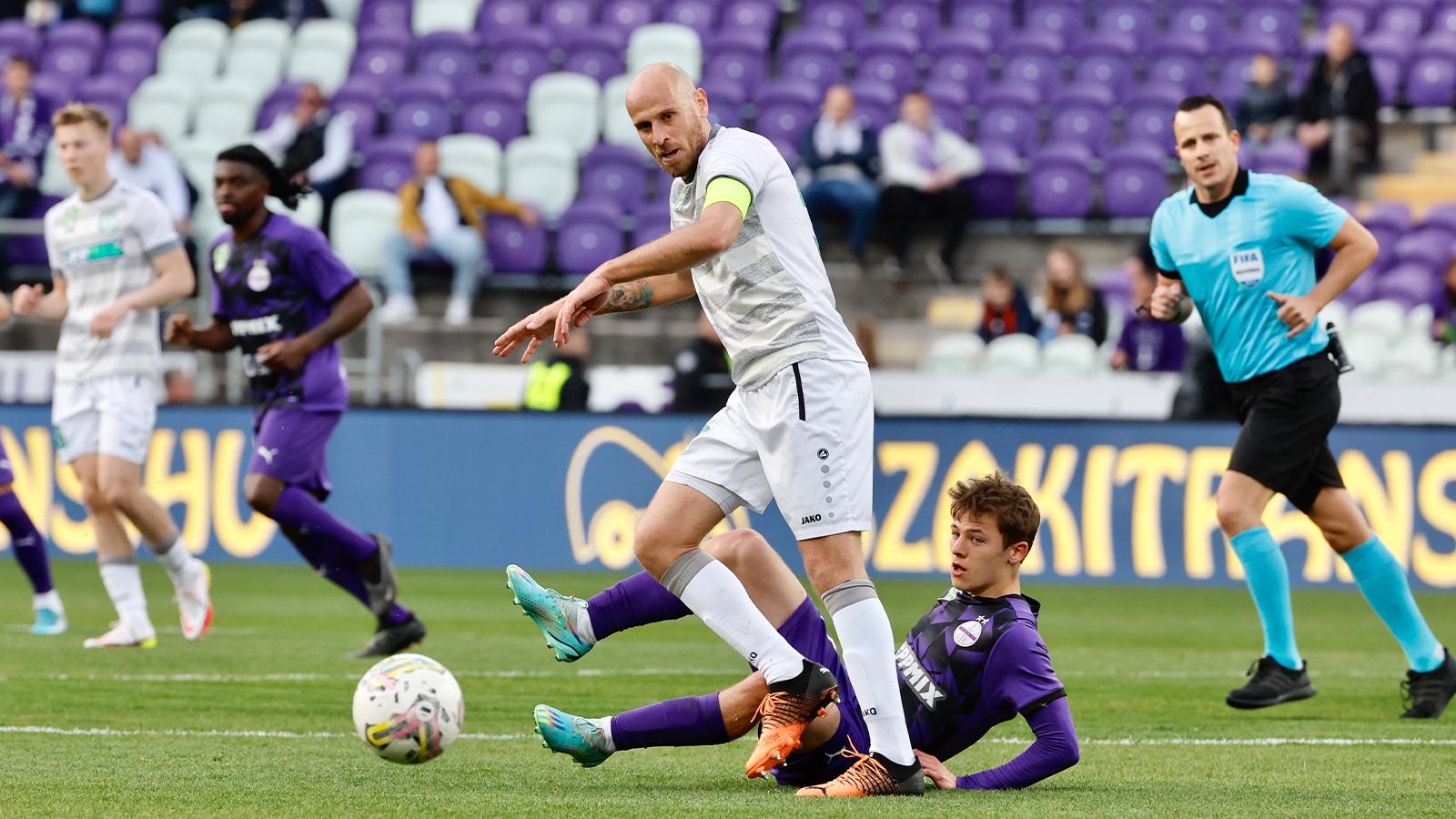 Sokáig úgy tűnt, nem láthat majd gólt az első félidőben a szép számmal összegyűlt közönség, a játékrész ráadásában azonban mindkét kapunál megrezdült a háló: a lila-fehérek szereztek vezetést egy óriási hibát követően. Az először kezdő Huszti csapott le arra a labdára, amelyről a védő azt hitte, kigurul az alapvonalon, majd megjátszotta az üresen érkező Ljujicot, ám egy perc múlva a túloldalon Könyves egy pattanás után lőtt hatalmas gólt.