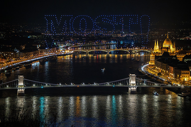 Látványos drónshow köszöntötte Rákay Philip filmjét Budapest egén.
