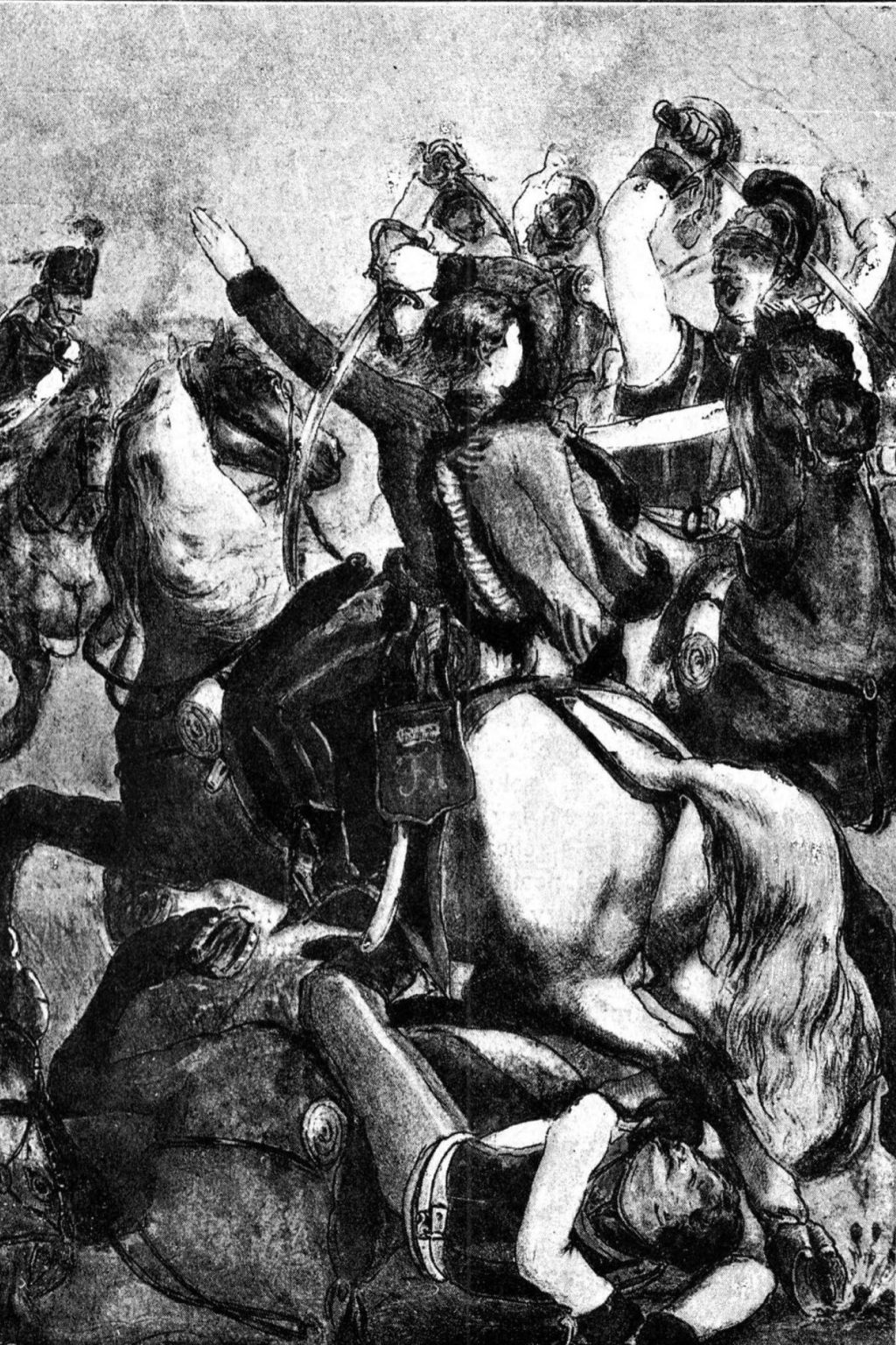 Lebstück Mária huszárhadnagy a tápióbicskei ütközetben egy korabeli rajzon.
