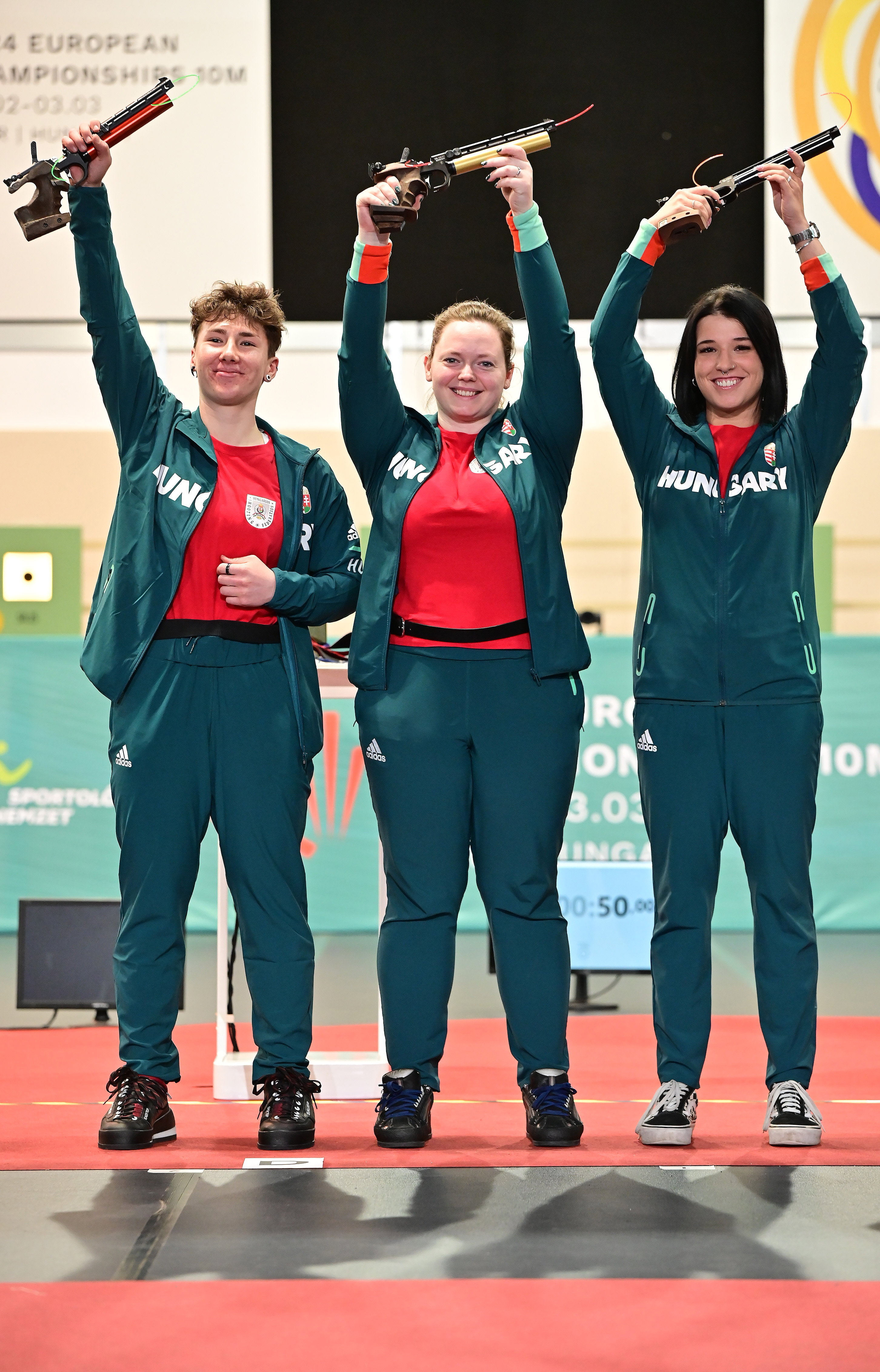 Ismét aranyérmet nyert a Fábián Sára Ráhel, Jákó Miriam, Major Veronika összeállítású magyar trió a női pisztolyosok csapatversenyében a győri légfegyveres Európa-bajnokságon.