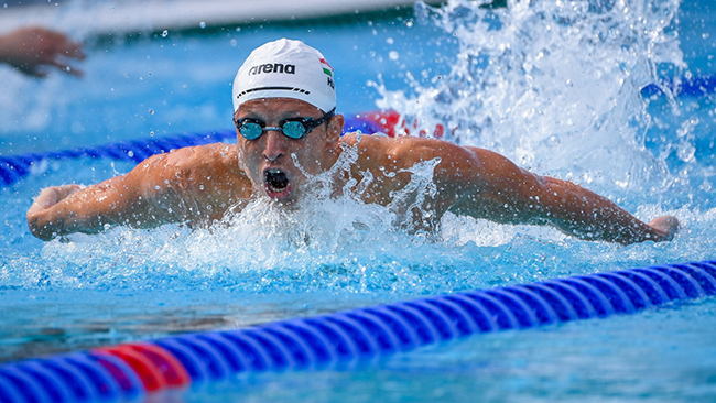 A Honvéd 24 éves klasszisa, aki az áprilisi országos bajnokságon egy év szünet után versenyzett újra, a 2022-es római Európa-bajnokság óta szerdán első alkalommal ugrott medencébe nemzetközi viadalon.