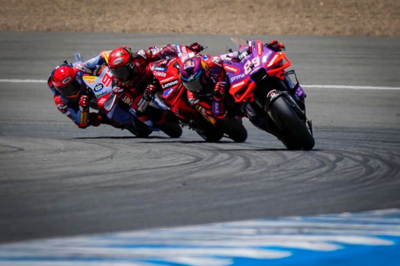 Martin folyamatosan ott loholt három-négy tizedmásodperccel Bagnaia mögött, Espargaro viszont néhány kisebb hibát követően visszacsúszott: Di Giannantonio, Vinales és Marc Marquez is megelőzte az Apriliát. Ráadásul utána Enea Bastianini kemény manővere után a pályát is át kellett vágnia, így Espargaro mellett még Fabio Quartararo is elmotorozott – a bevetődésért a Ducati olasz motorosa kapott is egy hosszúkörös büntetést. A táv feléhez érve kezdett kibontakozni egy újabb csata a harmadik helyért: Marquez előbb Vinalesen rágta át magát, majd második próbálkozásra már Bezzecchit is maga mögé utasította, így a 13. helyről rajtoló gresinis tíz körrel a vége előtt már a bronzérmes pozícióban haladt. Hátrébb viszont Quartararo remek hazai nagydíja idejekorán véget ért: még visszaverte Espargaro egyik támadását, de nem sokkal később elesett a Yamahával. Három körrel a leintést megelőzően Martin hibázott egyet a sikánban, így teljesen ráesett Bagnaia és Marquez, előzni azonban nem tudott az olasz. És ez már így is maradt, sőt a legvégén még Marquez is szemfülesen elkapta a címvédőt, így ő lett a második az idén másodszor győzni tudó Martin mögött! Ezzel a spanyol értelemszerűen növelte is a fórját a vb-tabellán, ahol Marquez is megközelítette Bagnaiát.