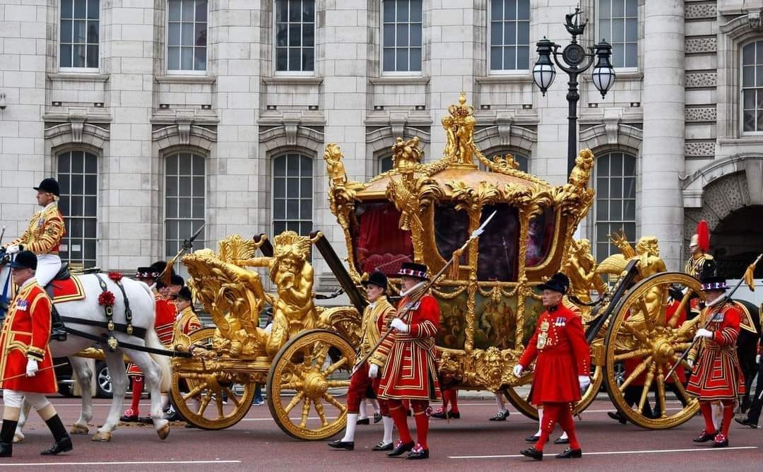 III. Károly király és hitvese 10:20 órakor indul a Buckingham-palotából díszes menet (The King's Procession) élén a Westminster-apátságba.