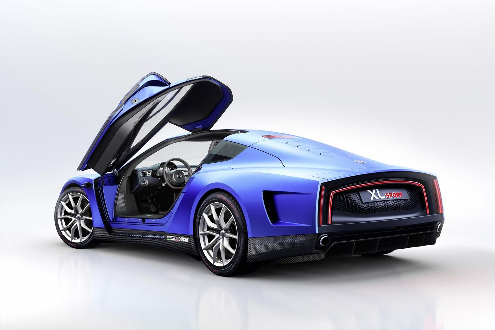 A következő verda is germán sarjadék, csak a kevésbé felvágós fajtából. A BMW-hez hasonlóan a Volkswagen XL Sport is csak kiegészítő motorként használ motorkerékpár blokkot, azonban az nem pusztán hatótáv-növelőként dohog a gép farában, hanem egy komoly hibrid hajtásrendszer része. Itt az eredeti kis turbódízelt cserélték le a konszerntárs vérbő superbikejának szívére: egy 197 lóerős L2-es Ducati Panigale Superleggera blokkra! Így a minimálfogyasztó kis dízel-elektromos autócskából egy bőven 200 fölött repesztő, 0-100-ig 5,7 másodperc alatt gyorsuló high-end méregzsákot faragtak. Kicsit még pofozták az űrhajódizájnt, hogy sportkocsisabb legyen, és ahogy a képen is láthatjátok, kár hogy örökre csak koncepció marad.