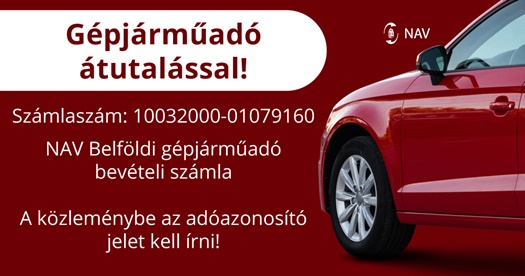 NAV: 3 nap múlva lejár a gépjárműadó befizetésének határideje.