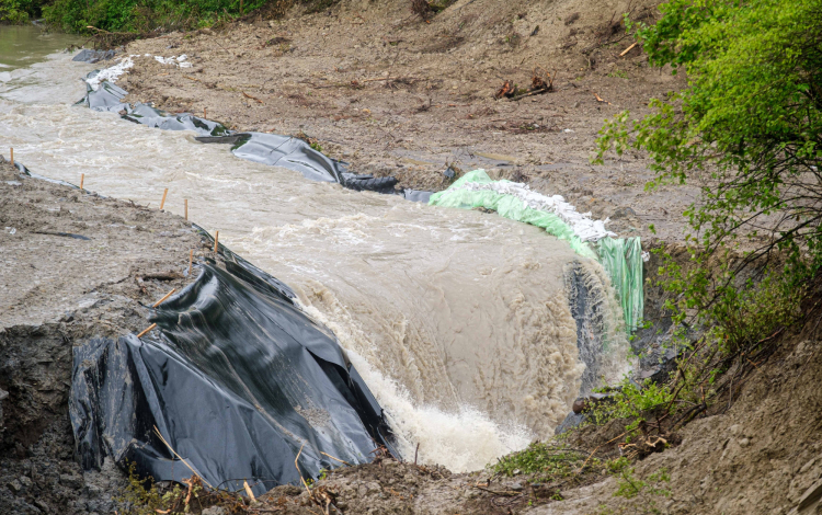 Elkezdődtek a Korond-patak elterelési munkálatai a bányakatasztrófa sújtotta Parajdon. A sóbányából kijutó sós víz környezetvédelmi problémákat okozhat
