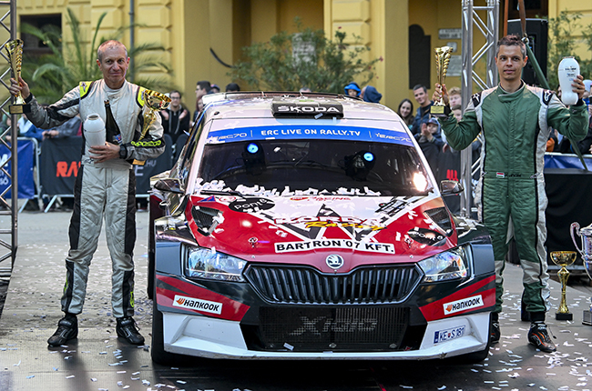 Az addig az összetett élén álló Csomós Miklós, Bán Viktor páros utolsó előtti szakaszon elszenvedett balesete után a Mads Östberg, Patrik Barth norvég, svéd kettős nyerte a Rally Hungaryt, az Európa-bajnokság (ERC) Nyíregyházán.