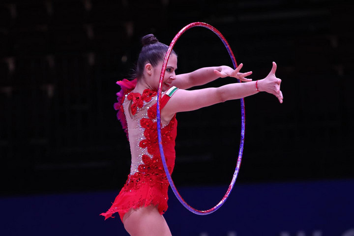 A hazai szövetség beszámolója szerint az MTK Budapest olimpiai kvótás versenyzője karikával - amellyel a tavalyi világbajnokságon bronzérmes volt - negyedik (34,400 pont), labdával hatodik (31,750), szalaggal pedig eredetileg nyolcadik (31,050) lett az üzbegisztáni versenyen.