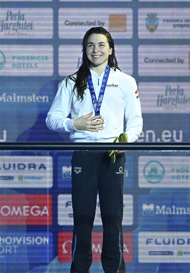 A 22 esztendős magyar versenyző 15:51.34 idővel csapott célba - 2021-es saját, 15:55.69-es rekordját adta át a múltnak -, ezzel duplázott a romániai kontinensviadalon, amelynek szerdai versenynapján 800 méter gyorson is harmadik volt.