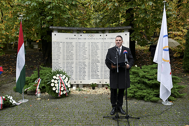 A Magyar Olimpiai Bizottság (MOB) halottak napi megemlékezésén, pénteken a Farkasréti temetőben Gyulay Zsolt elnök elmondta, hogy jelenleg 171 elhunyt olimpiai bajnok neve szerepel a falon, amely hamarosan megtelik, ezért a MOB már megtette a lépéseket, hogy egy "bajnokainkhoz méltó emlékmű vigye tovább a magyar olimpiai bajnokok emlékezetét".