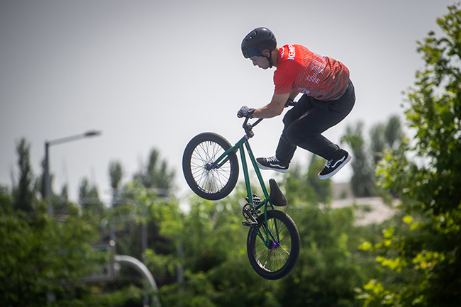A BMX freestyle parkban versenyző Kempf Zoltán továbbjutott a döntőbe a városi sportágak budapesti olimpiai selejtezőjén, a Ludovika Campuson.