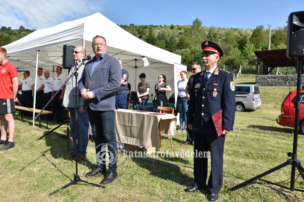A megnyitót Skuczi Nándor, a Nógrád Vármegyei Közgyűlés elnöke folytatta, aki beszédében köszönetet mondott minden önkéntes tűzoltónak eddigi áldozatos munkájáért, illetve kiemelte, hogy a Nógrád vármegyei fiatalok itthon tartásában nagy szerepe van az összetartó közösségeknek. Az ilyen közösségek kialakításához az egymást és környezetüket is önzetlenül segítő önkéntesek is hozzájárulnak. Ezután Seres Tibor tűzoltó ezredes, a Nógrád Vármegyei Katasztrófavédelmi Igazgatóság igazgatója köszöntötte a résztvevőket. Beszédében aláhúzta, ahhoz, hogy valaki önmagáénak vallhassa a tűzoltó hivatást rendelkeznie kell bizonyos erényekkel. Ilyen erények a bátorság, a bölcsesség, az igazságosság és a mértékletesség. Nógrád vármegye önkéntes tűzoltói kétségkívül rendelkeznek ezekkel az értékekkel, hiszen ők azok, akik szabadidejüket nem kímélve, önként sietnek más emberek megsegítésére. Igazgató úr beszédének zárásaként sérülésektől mentes versenyt kívánt a részt vevő csapatoknak.