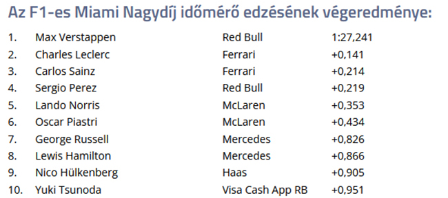 Két F1-es eseményt is rendeztek ma, hiszen előbb a Miami Nagydíj sprintfutamát, majd néhány órával később a vasárnapi nagydíj időmérő edzését bonyolították le Floridában. Meglepetés nem történt, legalábbis az élen: mindkét sessionön Max Verstappen tudott nyerni. Verstappené a sprintfutam Leclerc és Perez előtt.