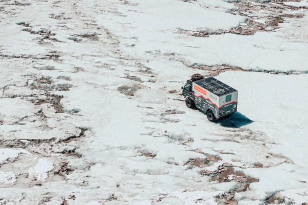Járműnek a svájci Aebi Scmidt 2 hajtómotoros, 326 LE rendszerteljesítményű haszonjárművét választották, amely 200 km-es hatótávolsággal rendelkezik. Mivel elektromos infrastruktúrát nélkülöző vidéken hajtják végre az expedíciót, összesen 42 m2 alapterületű napelem-panel állítja elő az áramot töltéshez, ideális körülmények között 7,4 kW teljesítménnyel.