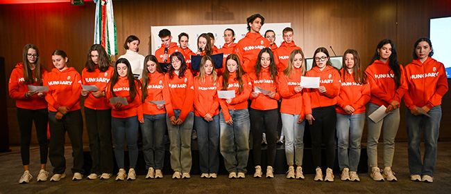 A fogadalomtétel szövegét Nagy Lola curlinges és Major Dominik, a tavalyi Európai Ifjúsági Olimpiai Fesztiválon (EYOF) háromszoros aranyérmes Major Dominik rövidpályás gyorskorcsolyázó mondta elő a szerdai ünnepélyes eseményen.
