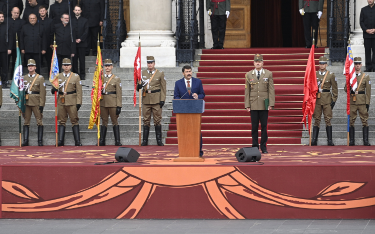 "Csak parancs van, küzdelem van, helytállás van" - mondta, majd példaként említette, hogy a katonáknak biztosítaniuk kellett a kórházak rendkívüli működését, az oltópontokon irányítani a tanácstalan embereket, ellenőrizni a tilalmak betartását, összességében "óvni-védeni egy láthatatlan ellenséggel harcoló hazát".
